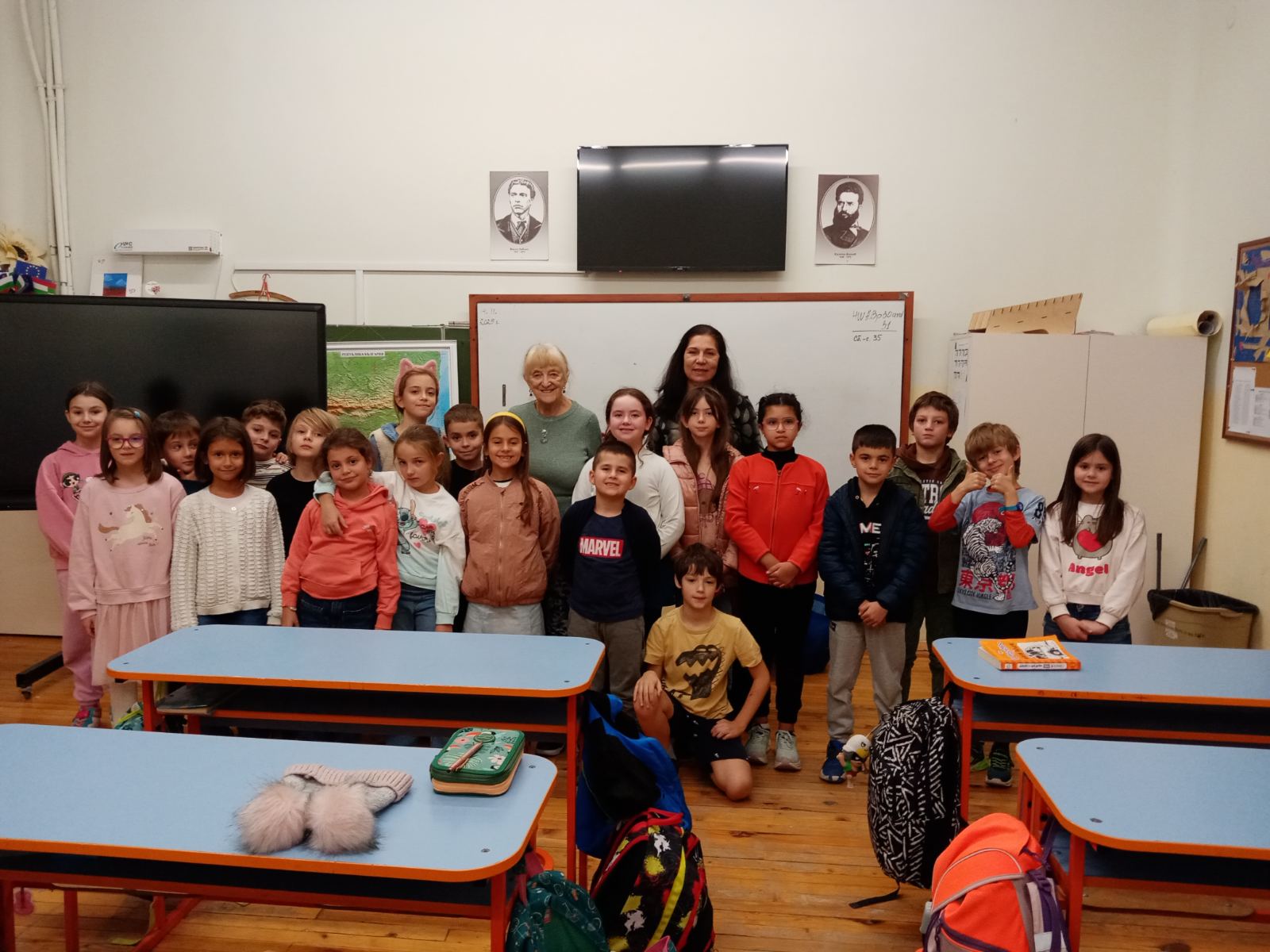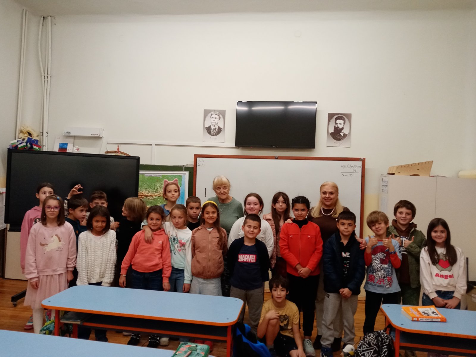На 14 ноември, г-жа Влайкова, класен ръководител на 2г клас проведе интересен урок по БЕЛ, с гост г-жа Емилия Цанкова-писател и режисьор-куклено майсторство. Тя донесе отново книгата си за деца «Заешки истории», която учениците вече познават, чели са я и са рисували свои картини, свързани с историите разказани от автора. Писателката впечатли децанта с истории от бъдещата си книга, задаваше въпроси на децата и децата задаваха любопитни въпроси, свързани с творчеството на госта. В основата на урока се обърна внимание на важните думи, на поздравите и на човешките ценности. Учителят включи всички ученици. Гостенката и нейните познания допринесоха за литературното обогатяване и любов към българската книга. На срещата присъстваше и г-жа Силвия Стефанова-зам. директнор ПЕ.